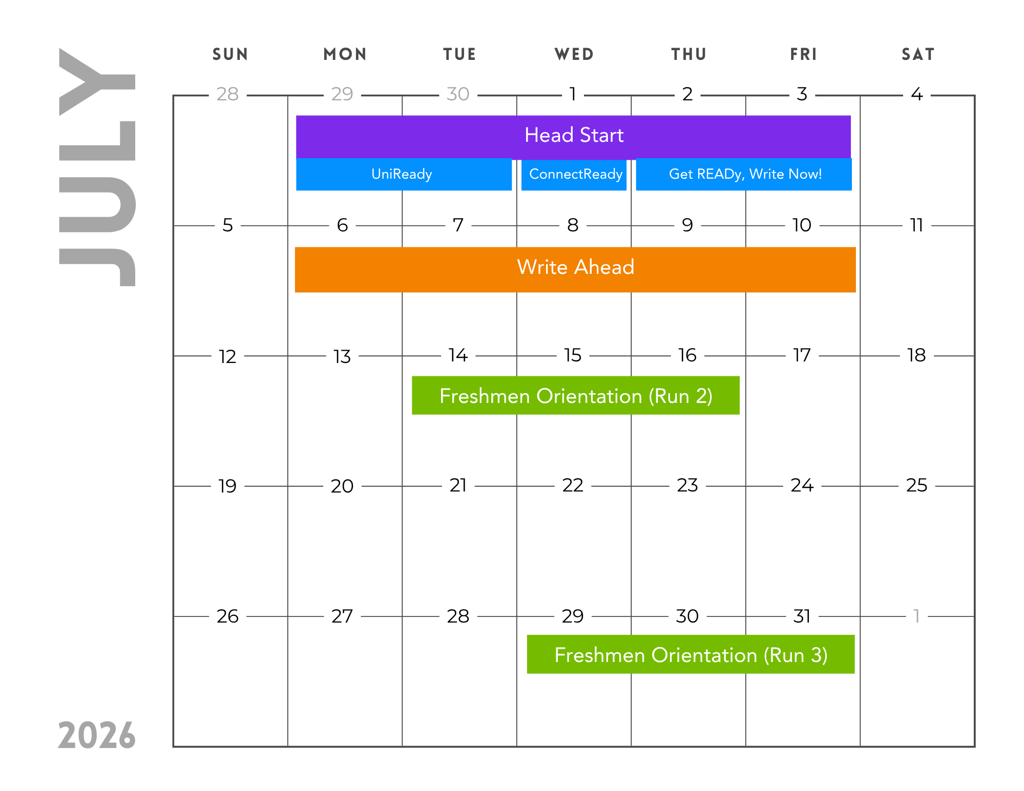 - Head Start: UniReady (29-30 June), ConnectReady (1 July), Get READy, Write Now! (2-3 July)